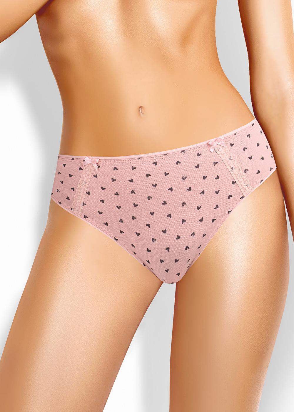 Трусы слипы женские из эластичного хлопкового полотна. Обработка краев по талии резинка с кантом, по ноге - полуокантовка. Боковые кружевные вставки. По переду два атласных банта.