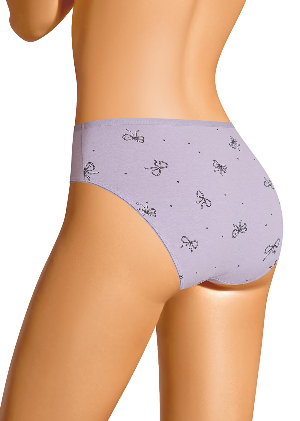 Трусы слипы женские из эластичного хлопкового полотна. Обработка краев по талии - окантовочная резинка, по ноге - полуокантовка. По переду атласный бант.