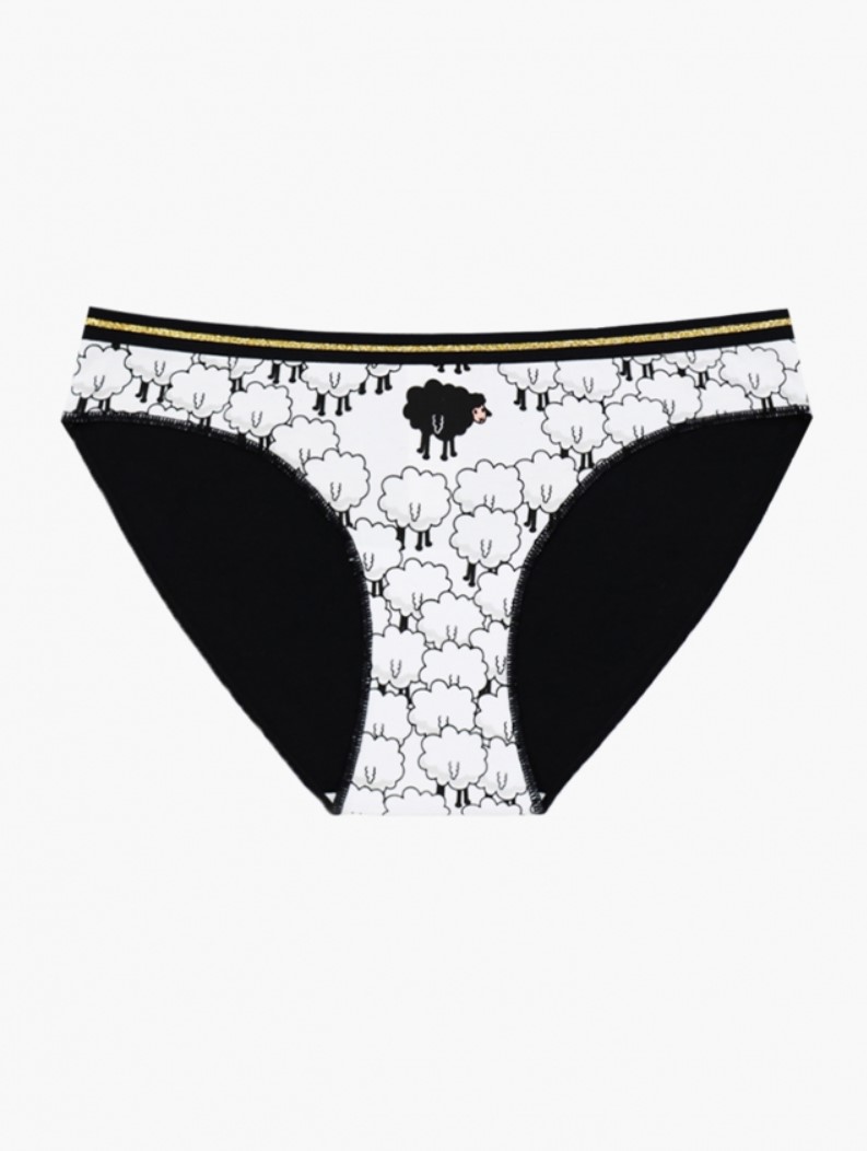 Женские трусы от торговой марки Индефини. Трусы-слипы из хлопка, белого цвета с принтом спереди, черного цвета с принтом сзади, на мягкой резинке.