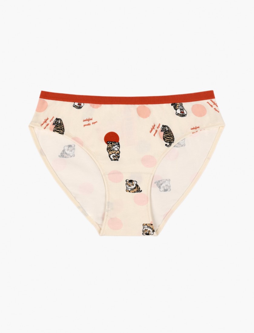 Женские трусы от торговой марки Индефини. Трусы-слипы из бамбука, бежевого цвета, с принтом и надписями, на мягкой резинке.