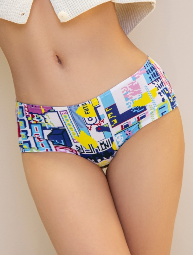 Женские трусы от торговой марки Индефини. Трусы-слипы из хлопка, белого цвета, с ярким принтом, с кружевным обрамлением сзади, на мягкой резинке, средней посадки.