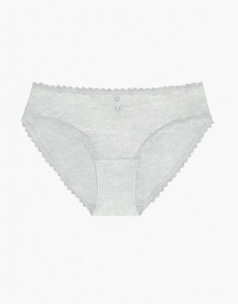 Женские трусы от торговой марки Индефини. Трусы-слипы из бамбука, серого цвета, с кружевным обрамлением, с декоративными пуговичками, на мягкой резинке, средней посадки.