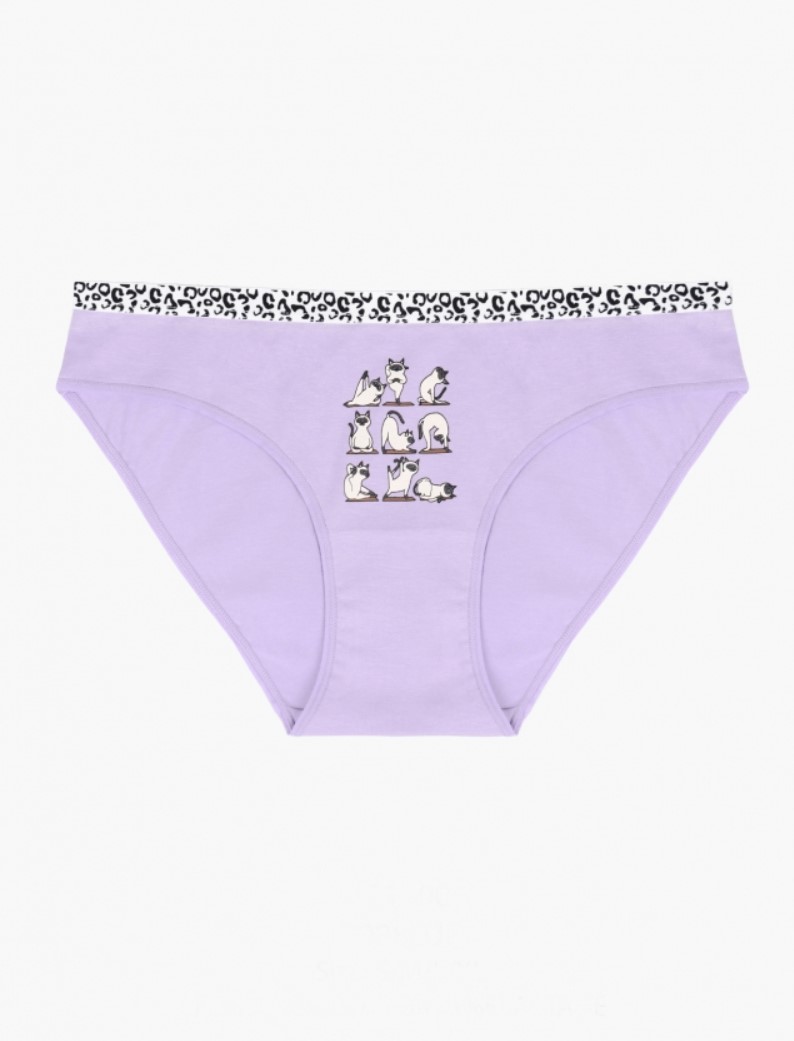Женские трусы от торговой марки Индефини. Трусы-слипы из хлопка, фиолетового цвета, с принтом, с принтом на резинке, на мягкой резинке, средней посадки.