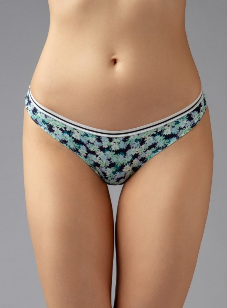 Женские трусы от торговой марки Индефини. Трусы-слипы из хлопка, черного цвета спереди, с цветочным принтом, с кружевной частью сзади зеленого цвета, средней посадки, на мягкой резинке.
