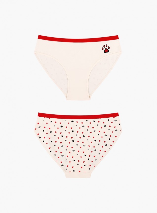 Женские трусы от торговой марки Индефини. Трусы-слипы из хлопка, бежевого цвета, с принтом, на мягкой резинке, средней посадки.