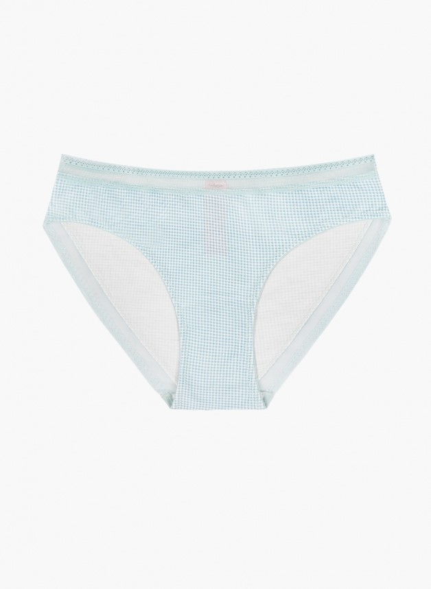 Женские трусы от торговой марки Индефини. Трусы-слипы из бамбука, голубого цвета, с принтом, с обрамлением, на мягкой резинке, средней посадки.