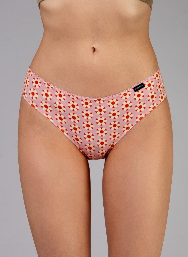 Женские трусы от торговой марки Индефини. Трусы-слипы изготовлены из хлопка, розового цвета с цветочным принтом, на мягкой резинке, средней посадки.