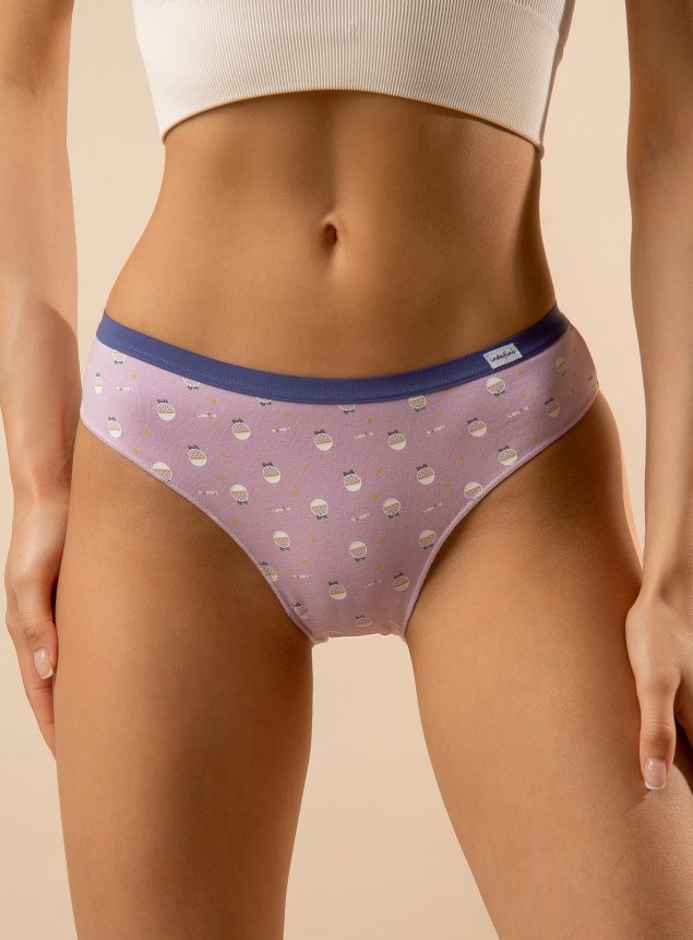 Женские трусы-слипы от торговой марки Индефини. Трусы-слипы сиреневого цвета из хлопка, с принтом, на мягкой резинке. Хлопковый материал обеспечит надежную посадку на тело и хорошую воздухопроницаемость для кожи, а красивый принт прекрасно дополняют внешний вид трусов.