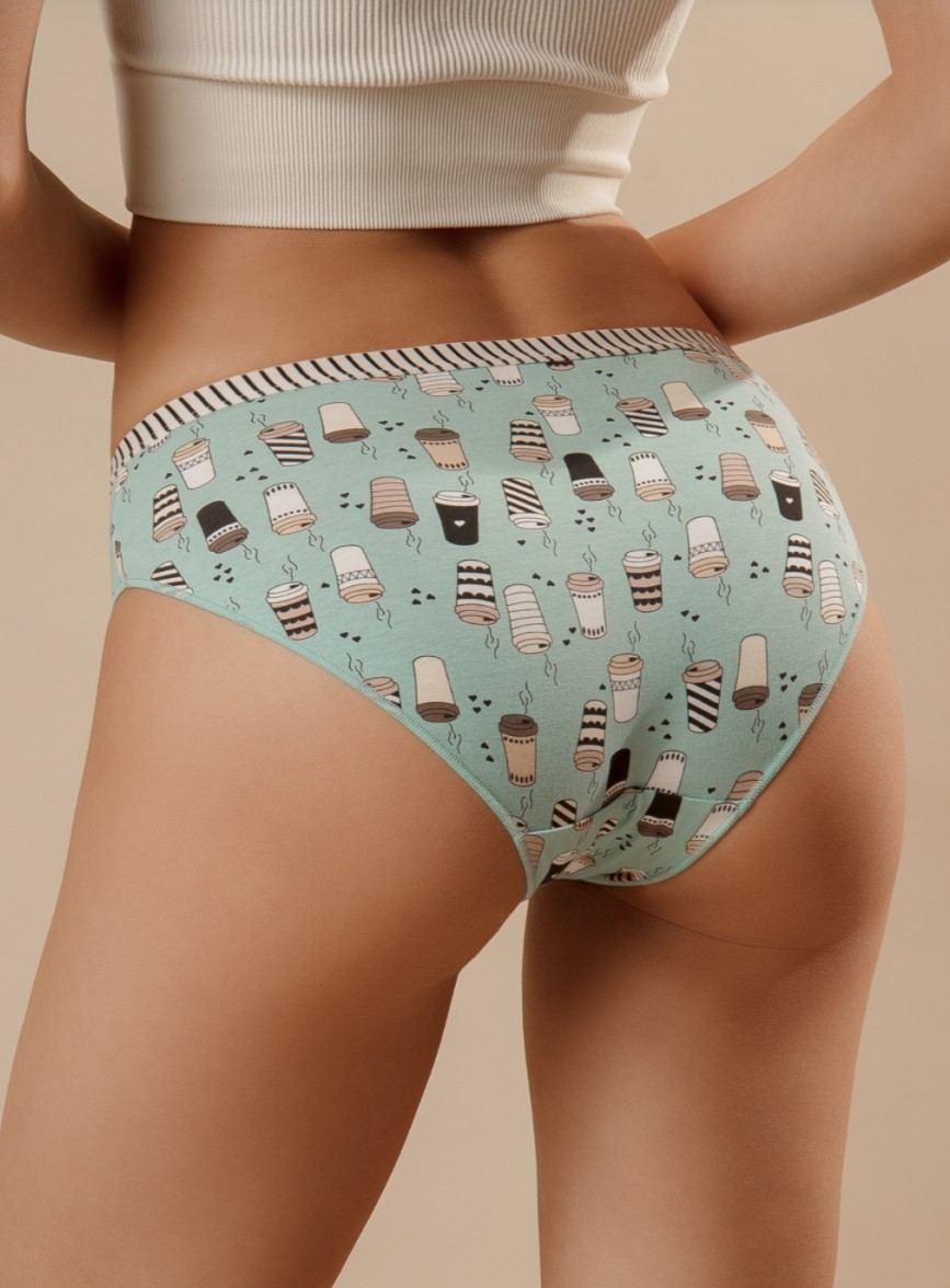 Женские хлопковые трусы-слипы хорошо поглощают влагу и пропускают воздух к телу. Мягкая резинка позволяет изделию удобно сидеть на коже и обеспечивает максимальный комфорт при ношении. Данная модель имеет резинку и принт “стаканчики”.