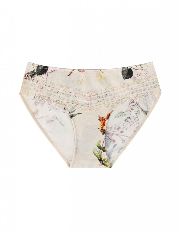 Женские кружевные бамбуко-хлопковые трусы-слипы позволяют прочувствовать комфорт и приятное ощущение на коже. Изделие имеет мягкую резинку, которая не сдавливает обеспечивает классическую посадку на талии. Украшением данной модели являются принт и кружево на передней части изделия.