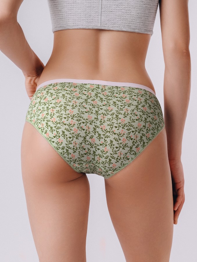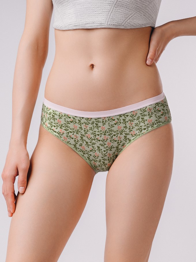 Трусы слипы женские, изготовленные из натурального хлопка, крепко прилегают к телу. Мягкая эластичная резинка на талии гарантирует комфортную посадку без давления и следов на коже. Зелёный цвет, сочетаясь с утончённым цветочным принтом, добавляет женственности и элегантности образу.