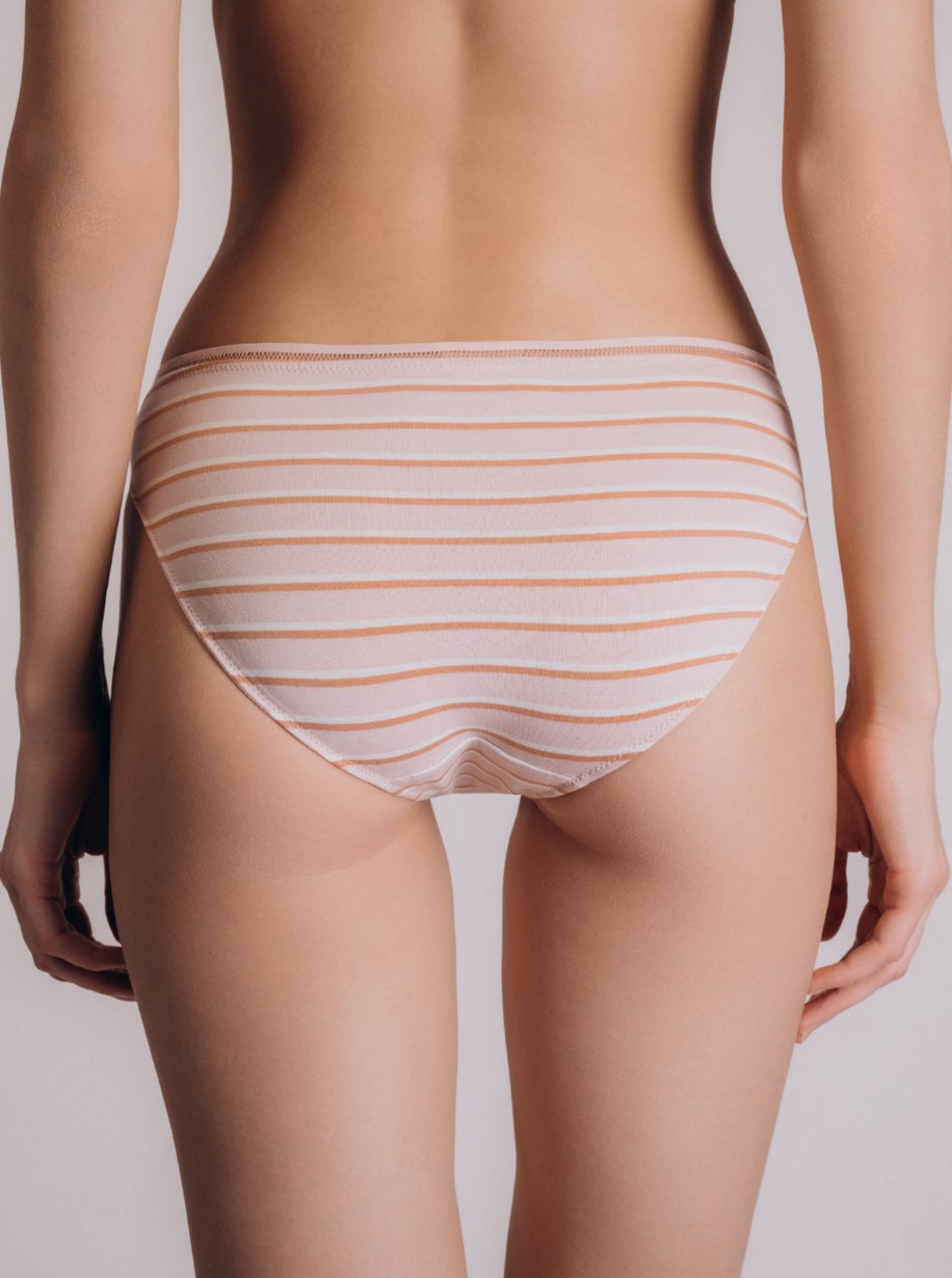 Женские трусы-слипы выполнены из мягкого хлопкового материала, который обеспечивает комфорт и воздухопроницаемость.Модель украшена нежным полосатым узором в розовых и белых тонах.