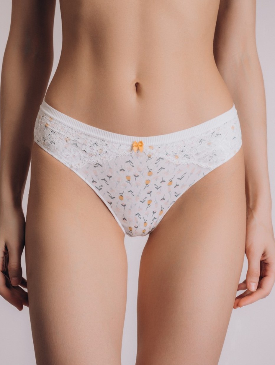 русы-слипы из хлопка, молочного цвета, с принтом, c кружевом, на мягкой резинке, средней посадки.
