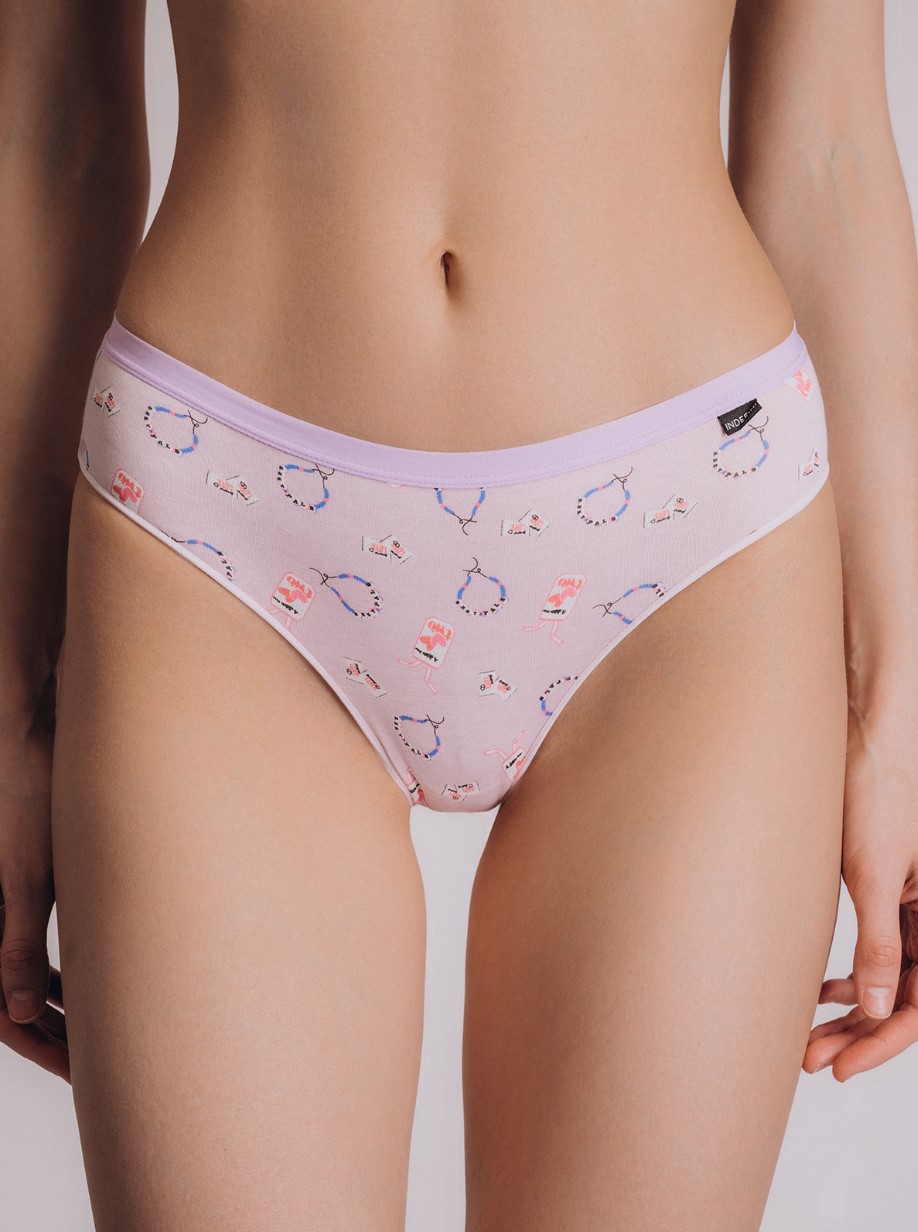 Сиреневые трусы-слипы от бренда Indefini с забавным принтом. Модель выполнена из мягкого хлопка с добавлением эластана, что обеспечивает отличную посадку и комфорт в течение дня. Эластичная резинка нежно-фиолетового цвета не сдавливает и надежно фиксирует изделие на талии.