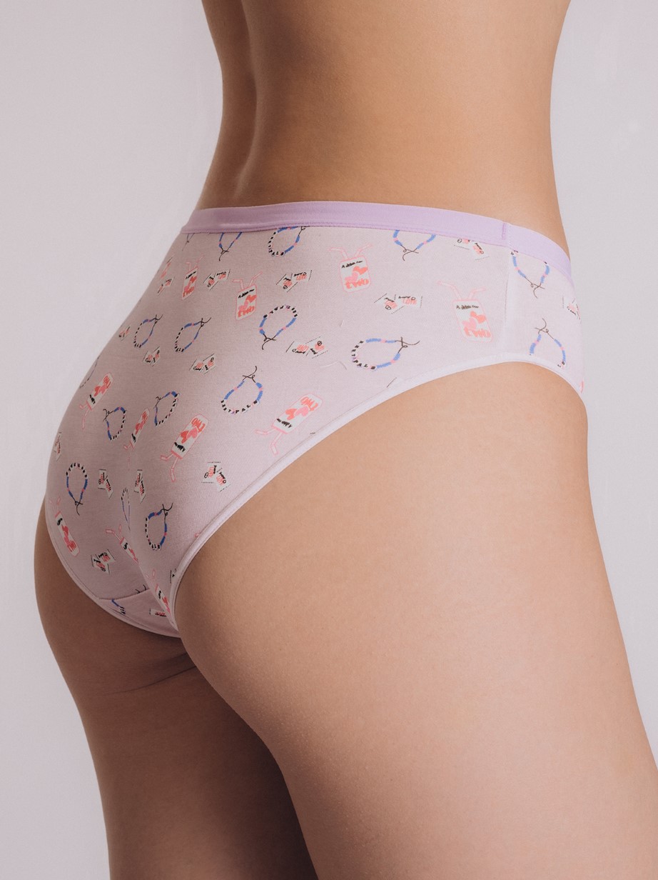 Сиреневые трусы-слипы от бренда Indefini с забавным принтом. Модель выполнена из мягкого хлопка с добавлением эластана, что обеспечивает отличную посадку и комфорт в течение дня. Эластичная резинка нежно-фиолетового цвета не сдавливает и надежно фиксирует изделие на талии.