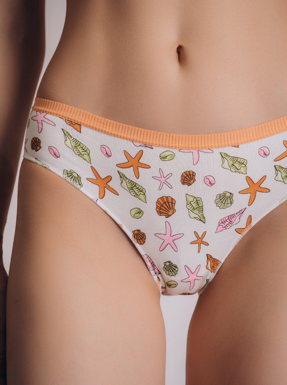 Трусы-слипы белого цвета, с принтом, из хлопка, на мягкой резинке цвета.
