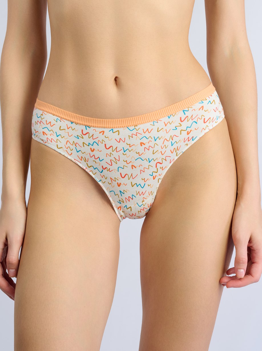 Женские трусы-слипы с принтом от бренда Indefini сшиты из мягкого хлопкового материала. Модель со средней посадкой и мягкой персиковой тесьмой по поясу. Яркий динамичный узор из разноцветных линий добавляет образу игривости. Модель станет отличным выбором в качестве удобных трусов для женщин на каждый день.