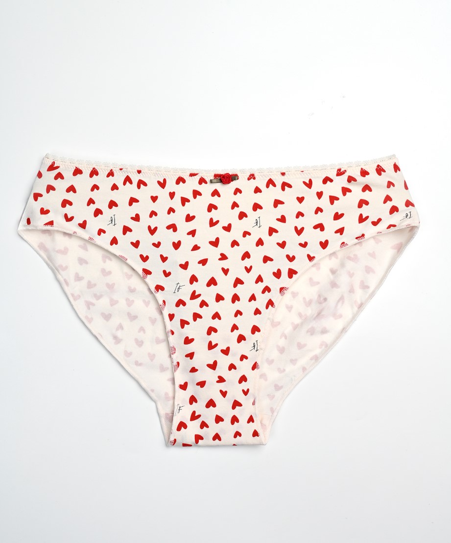 Женские трусы-слипы отлично сидят по фигуре. Трусы универсальны: в них удобно спать и ходить в течение дня. Модель украшена россыпью ярких красных сердечек — такой принт поднимет настроение с утра. Ткань легкая и приятна к телу.