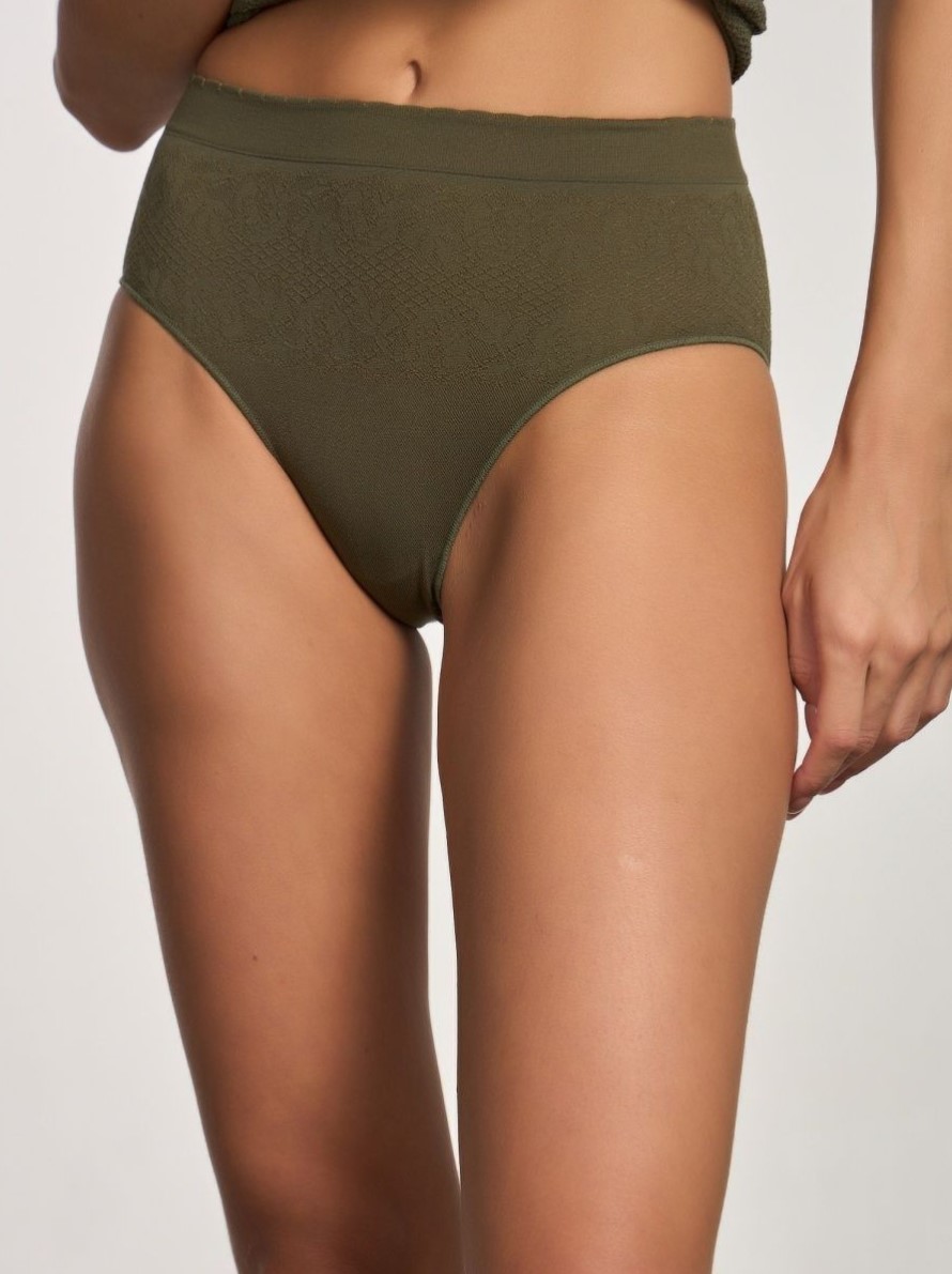 Трусики слипы бесшовные, однотонные, с антибактериальной ластовицей, с широким пояском и вставкой с эффектом кружева.