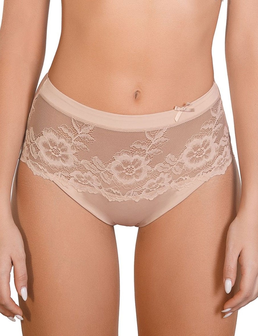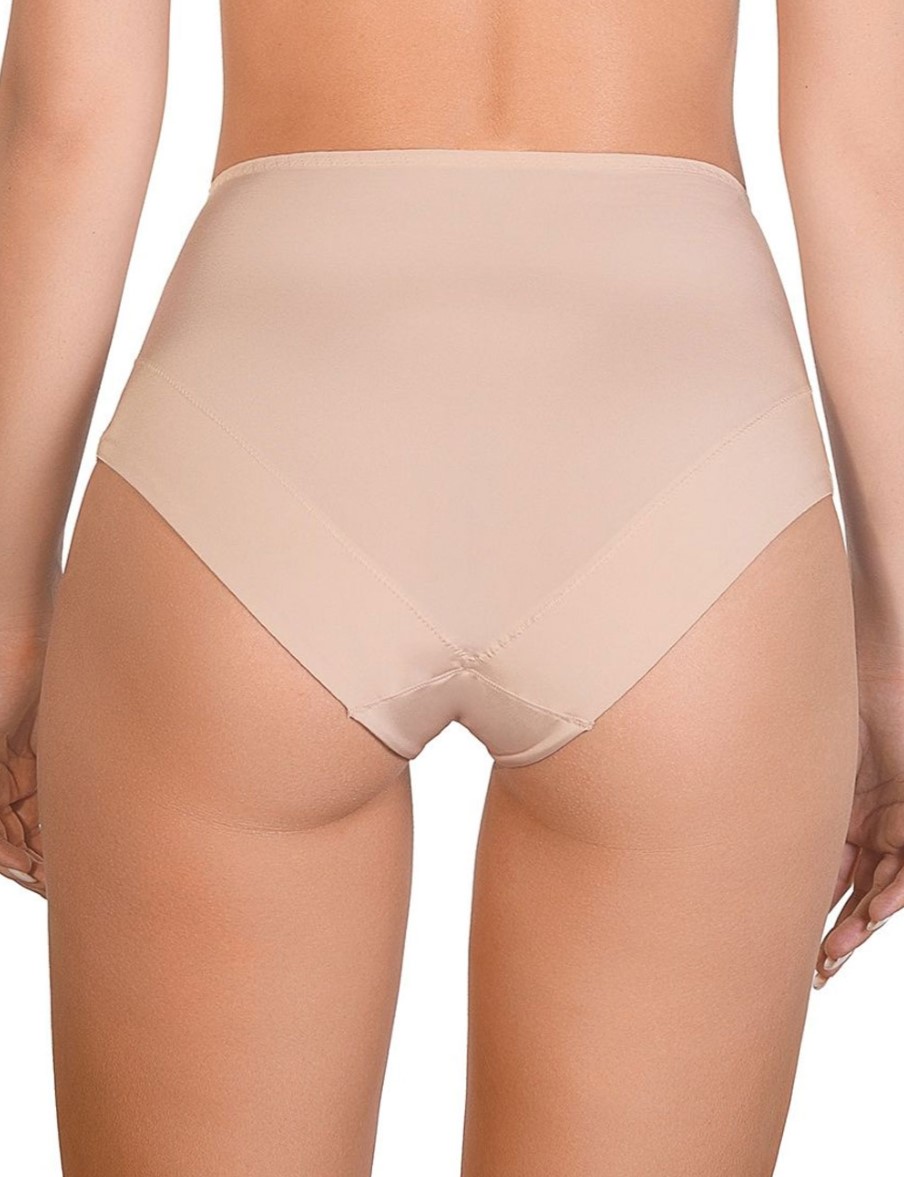 Трусики-слип с высокой линией талии. Нижняя часть передней детали выполнена из микрофибры и полностью дублирована хлопком. Верхний край передней детали со скрытой резинкой. Нижний край задней детали двухслойный, со скрытой мягкой плоской резинкой, необходимой для оптимального прилегания.