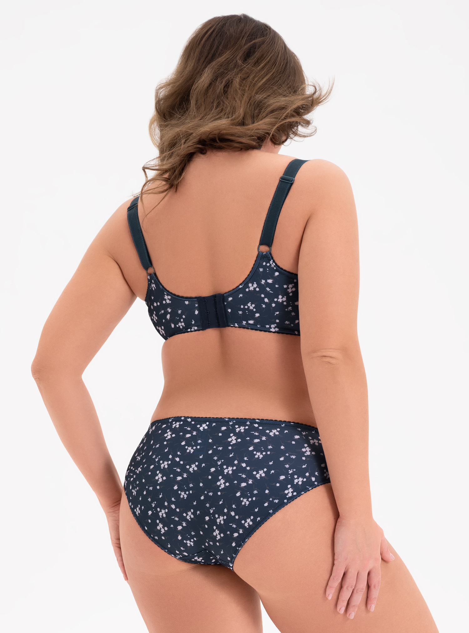 Трусы-слипы с низким боком выполнены из эластичного принтованного полотна и кружева.
