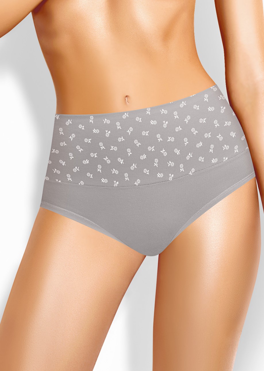 Трусы макси женские из эластичного хлопкового полотна. По переду талии обтачка широкая с внутренней резинкой и обработкой "зубы", по талии спинки окантовочная резинка, по ноге - обтачка с застилом. Спереди на широкой обтачке принт набивка.