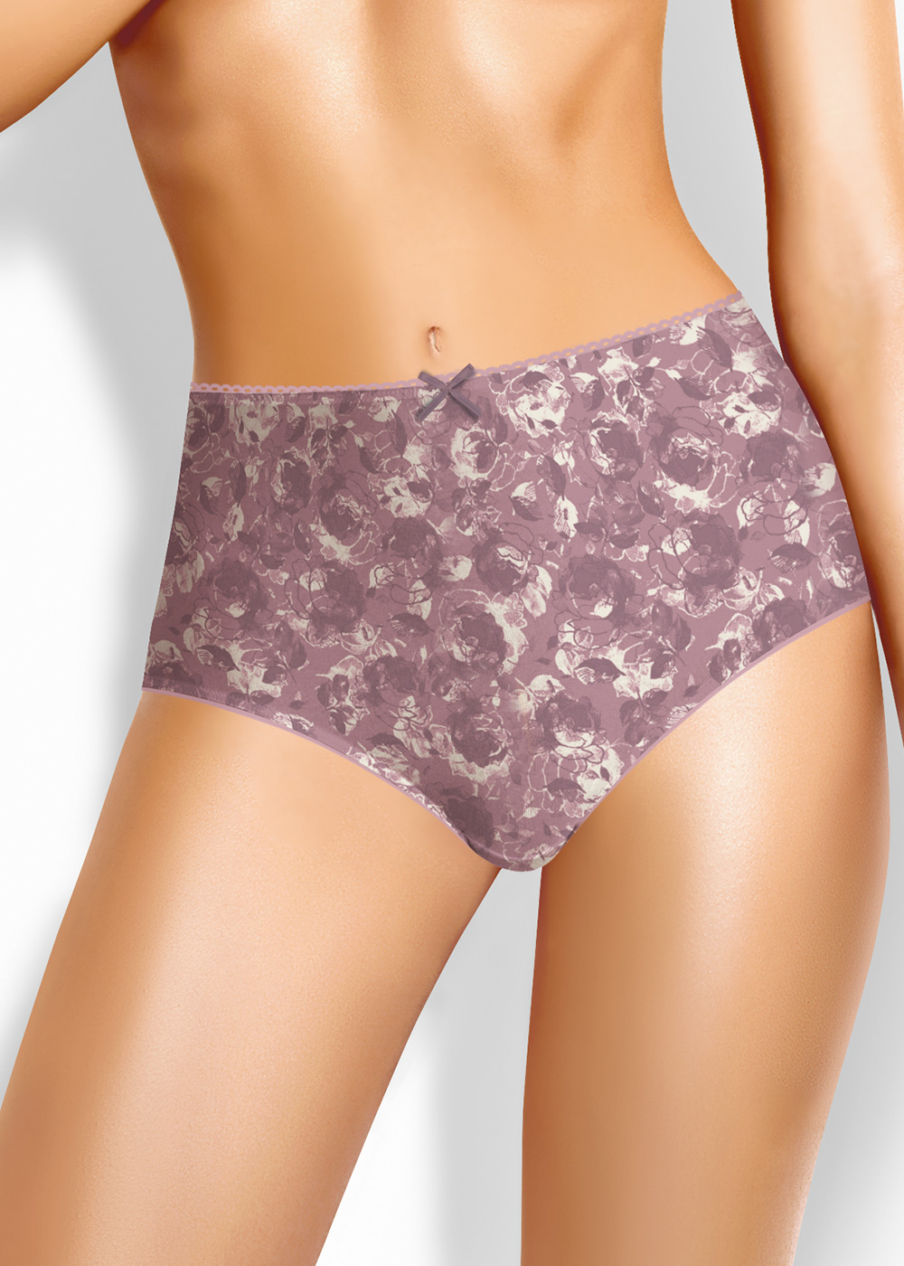Трусы макси из трикотажного набивного полотна кулирка. По талии ажурная резинка с фестоном, по ножке полуокантовочная резинка. Спереди бантик.