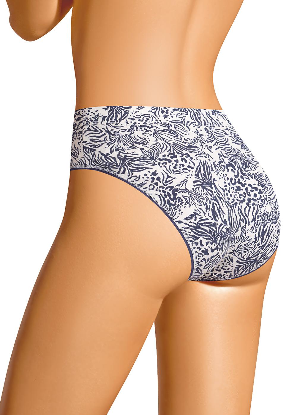 Трусы слипы - макси женские из эластичного хлопкового полотна. Обработка краев по талии - отрезной пояс с внутренней резинкой, по ноге - п/окатовка. На поясе по центру принт.
