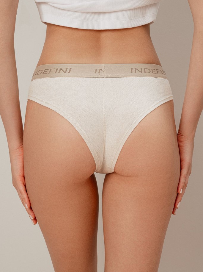 Трусы танга женские, изготовленные из хлопка, имеют универсальную среднюю посадку. Мягкая широкая резинка на талии украшена надписью «INDEFINI». Трусы танга выполнены в классическом белом цвете.