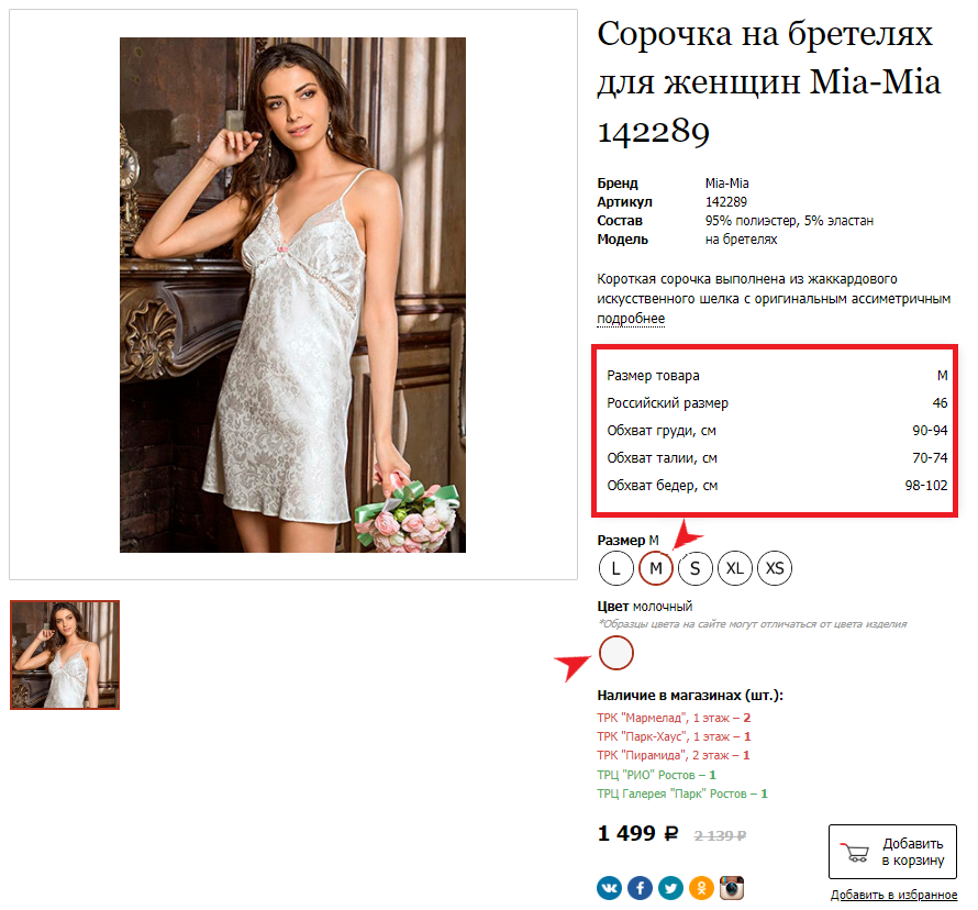 2 В карточке товара выберите необходимый цвет и размер. Обязательно сверьте свои параметры с таблицей размеров, которая отобразится при выборе размера.
